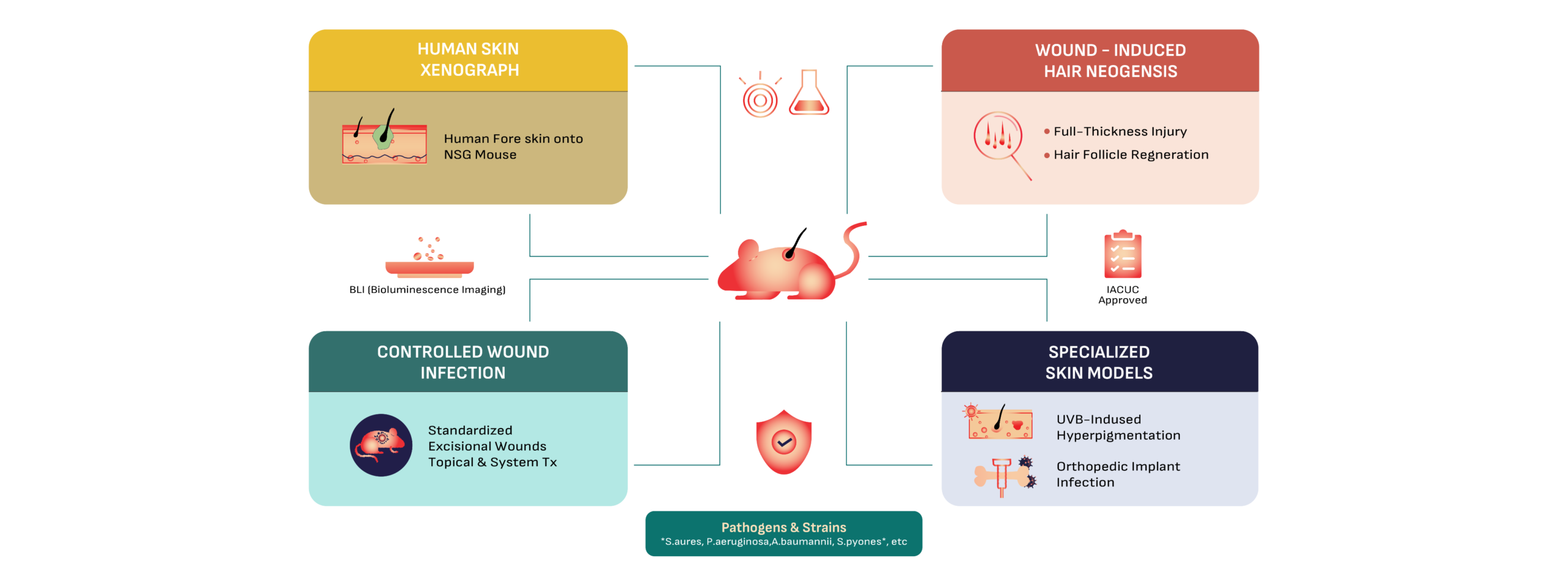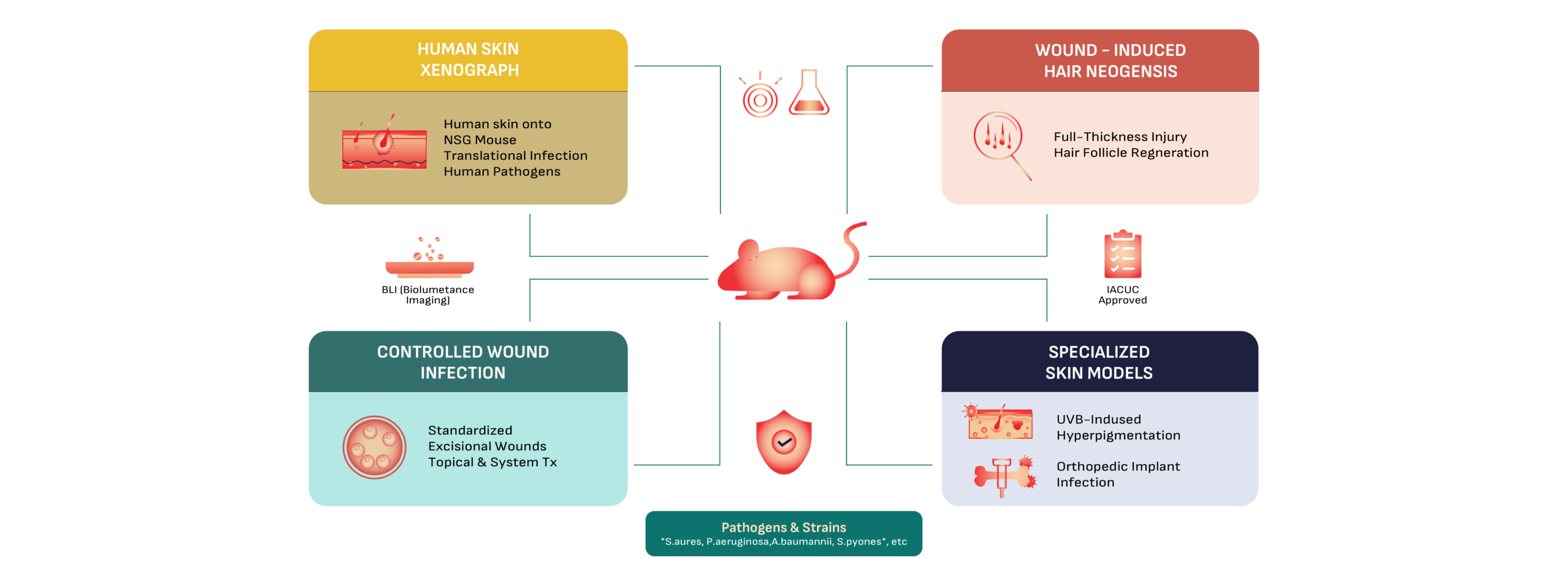 Approved IACUC protocols for most standard infection models. (Note: UVB and Xenograft models require a 1-2 month activation TAT).